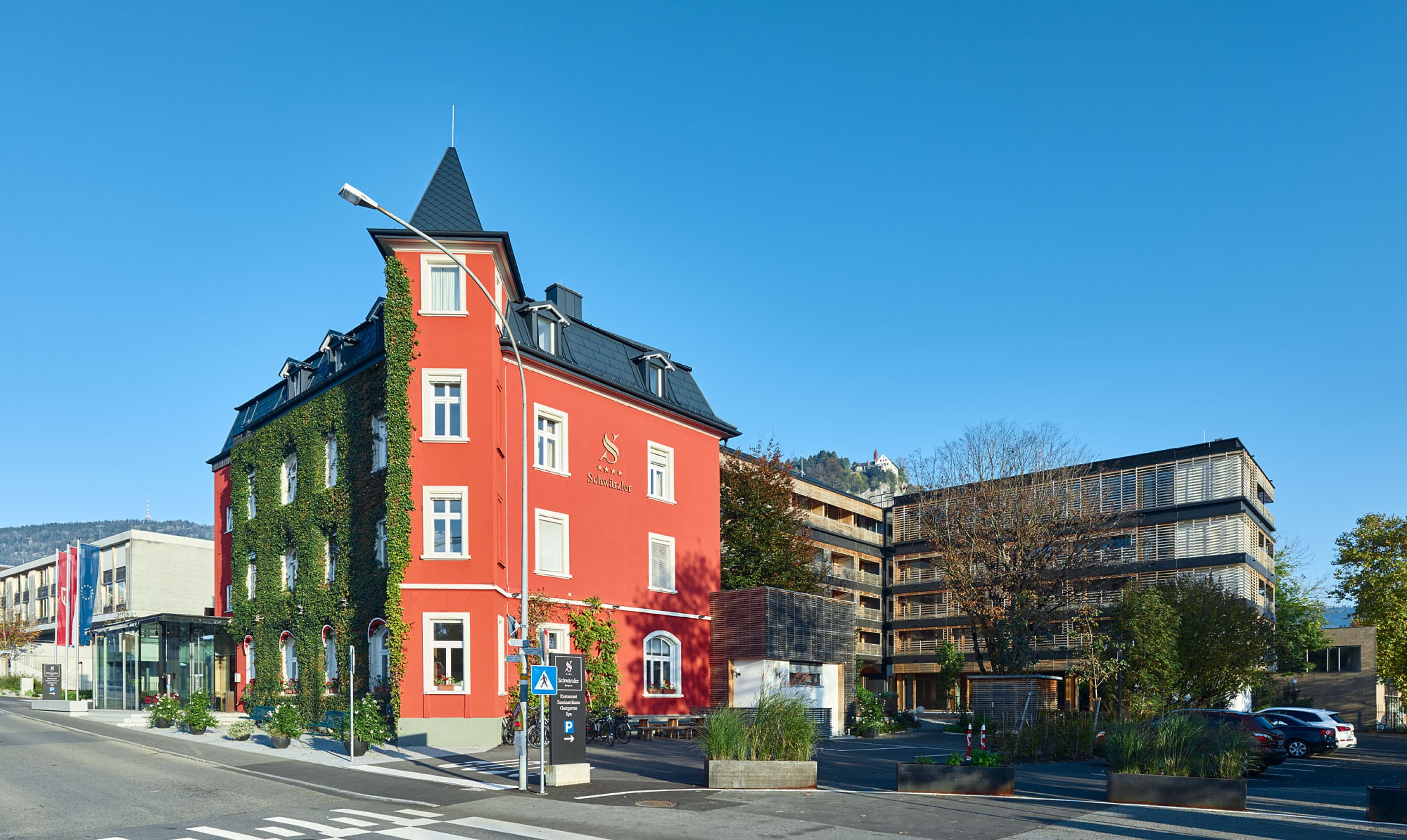 Das Hotel Schwärzler in Bregenz (Vorarlberg) ist ein modernes, lebendiges 4-Sterne Hotel mit 103 Zimmern & Suiten, Schwärzler Lounge & Bar, A-la-Carte Restaurant Babenwohl, Brasserie Karl mit Garten, 250 m2 Seminarräumlichkeiten, Wellness- und Fitnessbereich und gleichzeitig das Stammhaus der familiengeführten „Schwärzler Hotels & Restaurants“. Das Bregenzer Traditionshaus begeistert Geschäftsreisende, Seminargäste, Genießer, Literatur- und Kulturgäste von nah und fern mit höchstem Vorarlberger Wohnkomfort, regionaler Genusskultur und exzellenter Service-Qualität.